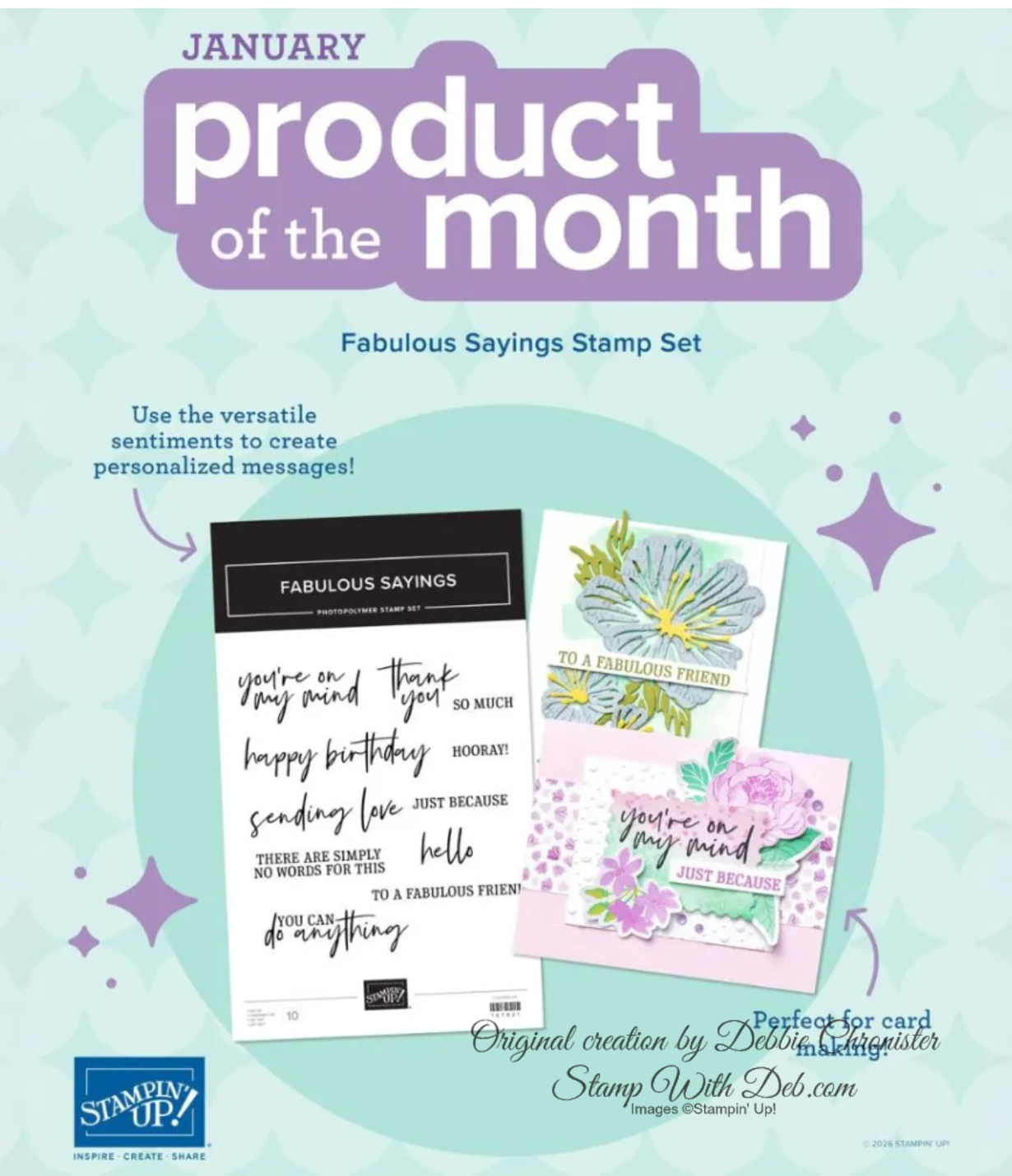 If you place a $75 order, before shipping and tax, you can purchase the Product of the Month for just $5. If you order with me, I will send you 4 cards at the end of the month using this fun greeting stamp set